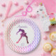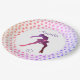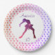 Modern ice skating birthday party plates with silhouette of girl figure skater and stars (Pink to purple).