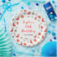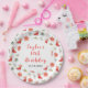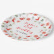 This elegant and festive plate features a watercolor ice skating boot, red poinsettia flowers, holly berries and foliage. The text combines handwritten script and sans serif fonts for a stylish and modern look. This is perfect for Christmas birthday parties.