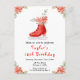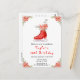 This elegant and festive watercolor birthday invitation features a watercolor red ice skating boot and beautiful floral red poinsettia flowers. The text combines handwritten script and sans serif fonts for a stylish and modern look. This is perfect for winter and Christmas birthday parties.