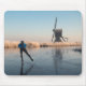 Mousepad with an athlete ice skating on a frozen river past hoar-frosted reeds and a windmill on a beautiful winter morning in the Netherlands.