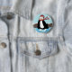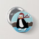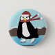 An adorable plaid scarf wearing penguin enjoys a winter day with some ice skating on a pin button