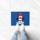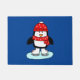 A drawing of a cartoon penguin wearing winter attire and ice skates.