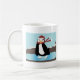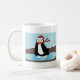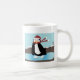 An adorable plaid scarf wearing penguin enjoys a winter day with some ice skating on a mug