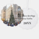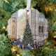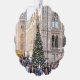 Ornament card features an original photograph of a Christmas tree and ice skaters at London's Natural History Museum.
