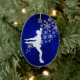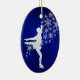 This elegant Christmas ornament features a silver silhouette female ice skater in front of a spray of silver snowflakes. The image is placed on a blue gradient background that seems to almost glow. The back of the ornament has the same blue background with text fields for you to customise. Perfect for the ice skater or ice skating fan, and also makes a great keepsake for a child from parents or grandparents.