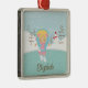 Dated & personalised cute blonde skater ice skating Christmas Ornament set on a snow filled background with trees & a snowman. A Wonder Christmas gift sure to be treasured for many years to come.
