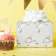 Adorable holiday gift wrap features hand drawn whimsical ice skating snowman on medium grey background