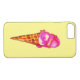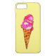 A cute and whimsical design of hand drawn hand illustrated ice-cream in a waffle cone. This pink brightly coloured sweet treat is perfect for a sweet tooth.