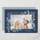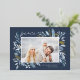 This simple and elegant nature-inspired holiday card features your favourite horizontal or landscape-orientated photo adorned at the corners with sprigs of graceful icy blue watercolor foliage with gold foil accents. "Peace" appears at the top left in chic gold foil handwritten script, with your names and the year at the bottom right. An elegant botanical design for your Christmas 2022 greetings.