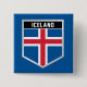 The national flag of Iceland is infused into a shield shape with the country name added above the flag. The background is the same colour as the blue in the flag.