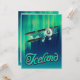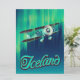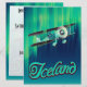 Iceland vintage style Travel poster of the Northern lights and a light aircraft flying past.