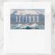 Sticker with photo of Jokulsarlon glacial lagoon and snow capped mountains behind, Iceland.