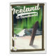 Iceland To snowboard vintage style travel poster of a snowboard under the northern lights in the icelandic wilderness.