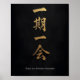 A striking black-and-gold “Ichigo Ichie” Zen poster.