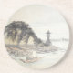 An important original painting by Hiroshige showing the lighthouse at Tempozan (Osaka) and the Yodo River. Tempozan (Mount Tempo, Osaka – named after the era name) was constructed in 1832 to prevent silting of the river mouth.