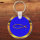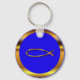 Beautiful blue and gold Ichthys (fish) design on a keychain.