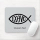 Ichthys or Ichtus Christian symbol. Fish outline with greek letters "ΙΧΘΥΣ". Custom background colour. Custom text.