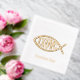 Ichthys or Ichtus Christian symbol. Fish outline with greek letters "ΙΧΘΥΣ". Custom text.