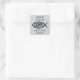 Ichthys or Ichtus Christian symbol. Fish outline with greek letters "ΙΧΘΥΣ". Custom background colour. Top and bottom custom text fields.