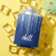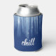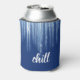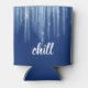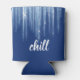 Fun can cooler, done in dark blue with graphics of icicles falling down from the top edge.  White text reads chill and can be personalised to read what you want.