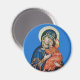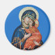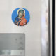 Round magnet featuring an Icon of the Theotokos.