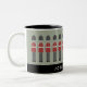 The Queen's Guards are iconic soldiers found guarding outside Buckingham Palace in London throughout the year. These Guards and their beautifully smart uniforms are loved by the millions of tourists when they visit London and are a must-see sight. These graphics have been reinterpreted and used in this instance to adorn a two-tone mug. The mug has been specially designed so as to allow the Sender to insert the "name" or "initials" or a "short message" to their recipent to make it that little bit special. This mug will be loved by someone who is an Anglophile or someone who loves a souvenir to remind them of their special time in London.