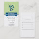 A stylised deep blue ear sits against a subtle pinstriped light green background. Perfect for otolaryngologists, audiologist or just about any business dealing with the ear and/or hearing. Leave the back as is with appointment information or customise it to your liking. Available in alternate colours with matching products.