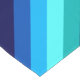 A 14” x 72” table runner featuring a cool pattern design of diagonal stripes in navy blue, cobalt blue, sky blue, icy mint teal, and light turquoise.