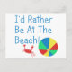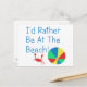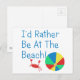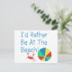 Cute red crab and multi-coloured beachball. Text in blue reads: I'd Rather Be At The Beach!