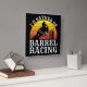 Barrel racing gift for cowgirl barrel racer in rodeo or western show. Retro sunset design features cowgirl and horse silhouette