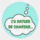 I'd rather be camping. Cartoon speech bubble in black and white with funny quote. Custom stickers.