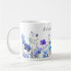 Bright watercolor flowers border this mug. For seasonal home decor, mugs are an easy change from cosy winter to a colourful spring aesthetic. Text can be changed. AI assisted graphic purchased with commercial license. Artwork: MokoDE