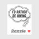 I'd rather be hiking. Cartoon speech bubble in black and white with funny quote.