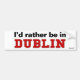 I'd Rather Be In Dublin! Are you from Dublin, Ireland? Do you have a friend or family member who loves Dublin, Ireland? If so, this "I'd Rather Be In..." bumper sticker is what you're looking for! The design features "I'd rather be in" in small black lettering at the top and "Dublin" in big red lettering at the bottom.