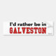 I'd Rather Be In Galveston! Are you from Galveston, Texas? Do you have a friend or family member who loves Galveston, Texas? If so, this "I'd Rather Be In..." bumper sticker is what you're looking for! The design features "I'd rather be in" in small black lettering at the top and "Galveston" in big red lettering at the bottom.