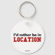 Take a look at this "I'd Rather Be In..." key chain! Do you miss your hometown? Do you have a friend or family member who would rather be in their hometown instead of where they are now? If so, this "I'd Rather Be In..." key chain is exactly the gift that you're looking for! The design features "I'd rather be in" in small lettering at the top and the location in big red lettering at the bottom.