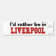 I'd Rather Be In Liverpool! Are you from Liverpool, United Kingdom? Do you have a friend or family member who loves Liverpool, United Kingdom? If so, this "I'd Rather Be In..." bumper sticker is what you're looking for! The design features "I'd rather be in" in small black lettering at the top and "Liverpool" in big red lettering at the bottom.