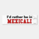 I'd Rather Be In Mexicali! Are you from Mexicali, Mexico? Do you have a friend or family member who loves Mexicali, Mexico? If so, this "I'd Rather Be In..." bumper sticker is what you're looking for! The design features "I'd rather be in" in small black lettering at the top and "Mexicali" in big red lettering at the bottom.