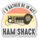 I'd Rather Be In My Ham Shack. Funny vintage distressed Amateur Ham Radio accessory would be a great gift for a hobbyist ham radio operator to wear in their ham shack. Do you love to operate shortwave & ham radios as a hobby? Do you have an antenna on your roof or backyard? Do you know all the best frequencies? Then this design is for you! Has a graphic of a ham radio set against a retro sunset.