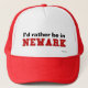 I'd Rather Be In Newark! Are you from Newark, New Jersey? Do you have a friend or family member who loves Newark, New Jersey? If so, this "I'd Rather Be In..." hat is what you're looking for! The design features "I'd rather be in" in small black lettering at the top and "Newark" in big red lettering at the bottom.