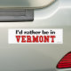 I'd Rather Be In Vermont! Are you from Vermont? Do you have a friend or family member who loves Vermont? If so, this "I'd Rather Be In..." bumper sticker is what you're looking for! The design features "I'd rather be in" in small black lettering at the top and "Vermont" in big red lettering at the bottom.