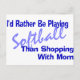 Girls who love playing the sport of softball will love these t-shirts, mousepads, mugs, tote bags, buttons, stickers and more that feature the cute softball saying, I'd rather be playing softball than shopping with mum. Great gifts for softball players.