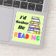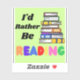 I'd rather be reading. With colourful letters, on green, and a stack of books!