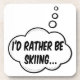 I'd rather be skiing. Cartoon speech bubble in black and white with funny quote. Available on mugs, stickers, buttons, t-shirts for men, women and kids.