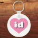 This key chain features a vibrant pink heart containing the bold, white, rounded lower case letters id, a playful abbreviation for Idaho, the gem state.
