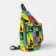 Are you a fan of the Gem State? This sling bag has a pop art pattern featuring the US state of Idaho in blue, black, purple, red, green and yellow.