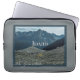A digital landscape painting of Idaho. The rugged Sawtooth mountain range is combined with the sage brush landscape of the southern part of the state. Wild horses and a blue butterfly have been added to the scene. The state motto and year of joining the Union are at the bottom of the picture in white lettering; "The Gem State", "1890". The word, Idaho, is in a white font in the centre of the artwork. Image Copyright ©2023 Kimberly J Tilley.