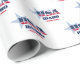 Idaho wrapping paper. A graphic design celebrating Idaho's identity with typography that features the iconic red, white, and blue of the American flag.