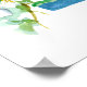 A poster decorated with a mountain bluebird on a Syringa, mock orange, flowering bush with the state shape hand painted with watercolor. The design is inspired by the state bird and state flower for Idaho. Celebrate The Gem State! Great gift for college students for dorm room decor!