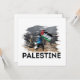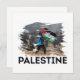 The "Palestine" design combines a real image that expresses the Palestinian struggle with a powerful visual impact in a torn style that reflects resilience and defiance. The design is a visual message that embodies strength.